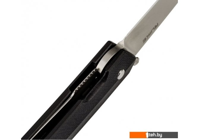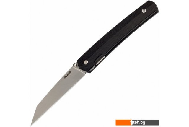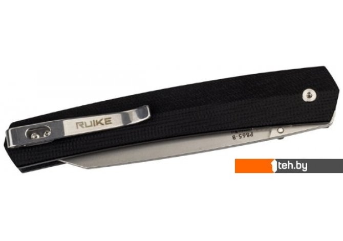 | Информация | Особенности:модель Ruike P865-B имеет складную конструкцию;нож открывается с помощью одностороннего шпенька;полная длина ножа в открытом положении — 20,5 см, в закрытом — 11,4 см;блокировка лезвия производится с помощью замка Liner-lock;форма клинка — Wharncliffe;режущая кромка по всей длине имеет гладкую заточку;нож имеет односторонний шпенек;длина клинка — 9,1 см;толщина лезвия в области обуха составляет 3,1 мм;для изготовления клинка применяется нержавеющая сталь марки 14C28N;лезвие было закалено до уровня 58-60 HRC;рукоять ножа состоит из нержавеющей стали марки 420 и полимерных накладок из G10;нож штатно укомплектован съемной стальной клипсой;вес модели Ruike P865-B составляет 70 грамм. |