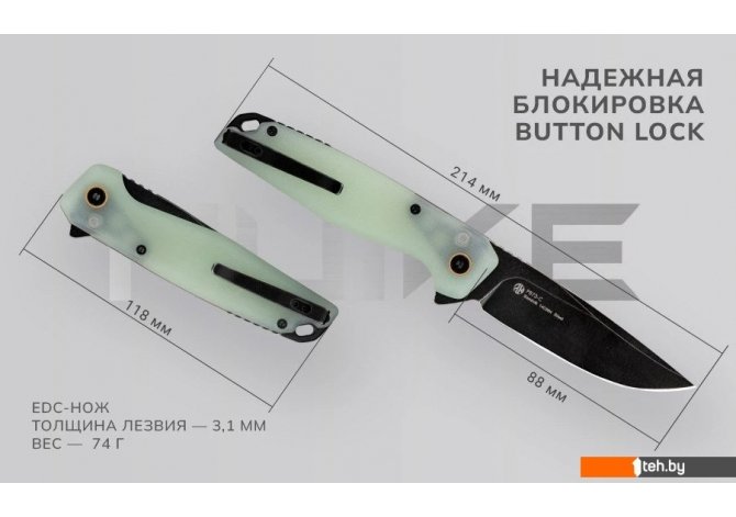 | Информация | - P873 — это легкий и универсальный складной нож, идеально подходящий для повседневного использования. В этой модели впервые внедрена система блокировки Button Lock, что обеспечивает дополнительную безопасность. Рукоятка выполнена из композитного стеклотекстолита G10, а клинок изготовлен из качественной нержавеющей стали 14C28N. - Нож P873 сочетает в себе функциональность, стиль и надежность, что делает его отличным выбором для ежедневного ношения. Он легкий, с эргономичной рукояткой и острым лезвием Drop Point. Замок Button Lock гарантирует безопасность при использовании и хранении, а также удобство в обращении. - Клинок из шведской нержавеющей стали 14C28N обладает высокой коррозионной стойкостью и твердостью 57-59 HRC, что позволяет ему долго сохранять остроту. Форма клинка Drop Point делает его универсальным, идеально подходящим как для резки, так и для колющих движений. - Механизм блокировки Button Lock обеспечивает надежную фиксацию лезвия и позволяет управлять ножом одной рукой. Кнопка на рукояти надежно блокирует лезвие, что добавляет удобства в использовании. - Для рукояти был выбран современный материал — микарта, состоящая из полимерных смол и бумаги или ткани. Этот материал устойчив к перепадам температуры и химическим веществам, легкий и прочный, что гарантирует долговечность ножа. Удобная клипса позволяет закрепить его на кармане, поясе или сумке. - Нож P873 разработан для удобной переноски и эффективной работы. Легкая конструкция отлично сочетает прочность и функциональность. - Шариковые подшипники и флиппер обеспечивают плавное и быстрое раскрытие лезвия, что делает использование ножа еще более комфортным. EDC нож станет вашим надежным спутником в любых ситуациях. |