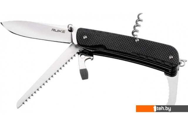 | Информация | Если стоит задача выбрать небольшой, но многозадачный нож, который можно было бы носить с собою в кармане всюду, где он может потребоваться, то лучшим вариантом станет модель Ruike LD32. Это по-настоящему практичный нож, важной особенностью которого остается его компактность. Он весит только 164 грамма, а размер в сложенном виде не превышает 114 мм. Тем не менее, данный нож действительно представляет собою полный комплект инструментов, которые будут полезны во время поездки на природу. Естественно, главным в этом наборе является нож. Он отлично приспособлен для выполнения подсобных работ, а длины клинка 85 мм вполне достаточно и для того, чтобы приготовить на пикнике бутерброды. Толщина лезвия Ruike LD32 равна 3 мм. Этот нож еще на заводе отлично заточен способом Plain – гладко. Эта заточка останется с ним надолго, чему способствует высокий уровень твердости используемой стали (до 59 HRC). Марка стали называется 12С27 и входит в семейство нержавеек. Лезвие ножа сделано отполированным до зеркального состояния, поэтому отлично выглядит. Чтобы не оставлять неаккуратных следов на его поверхности, открывать нож лучше, взявшись за шпенек, который специально сделан у основания клинка. А в полностью открытом положении лезвие сразу же блокируется встроенным в этот нож замком Liner lock. Эта особенность позволяет ему выдерживать гораздо более серьезные нагрузки. Такой замок принадлежит к семейству фиксаторов линейного типа, и если нужно нож сложить, достаточно отвести в сторону пластину стали, которая упирается в клинок в основании рукоятки.Рукоятка ножа также соответствует принципам практичности и красоты, которые заложены для модели Ruike LD32. Ее стальная база дополнена парой накладок из композитного материала G10. Он напоминает на вид пластик, но является гораздо более прочным. В то же время, этот материал не впитывает воду, спокойно переносит воздействие солнечных лучей. Его поверхность – неровная. Это сделано специально, чтобы нож не скользил, если взять его в мокрые ладони.Другие инструменты также изготовлены из нержавеющей стали и отлично приспособлены к полевым условиям. Они размещены в разных частях рукоятки и достать каждый будет легко и удобно. В наборе имеется штопор, открывалка для бутылок, уменьшенная версия пилы по дереву, две прямых отвертки разной ширины, инструменты для снятия изоляции с каких-либо проводов, резак для ремней, стеклобой. Носить нож можно как на цепочке, прикрепленной к стальному кольцу, так и закрепив его в кармане прижимной клипсой. |