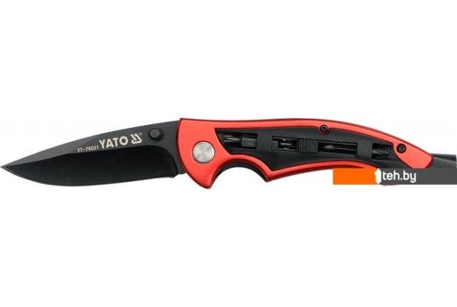 | Информация | Складной нож YATO с черным лезвием с полным острым концом длиной 95 мм, может открываться одной рукой, замок для случайного закрывания, эргономичный металлический корпус со встроенным резиновым покрытием для хранения, содержащим 8 выдвижных бит самых популярных размеров, магнитный держатель бит на конце ручки в комплекте чехол для ремня на липучке. |