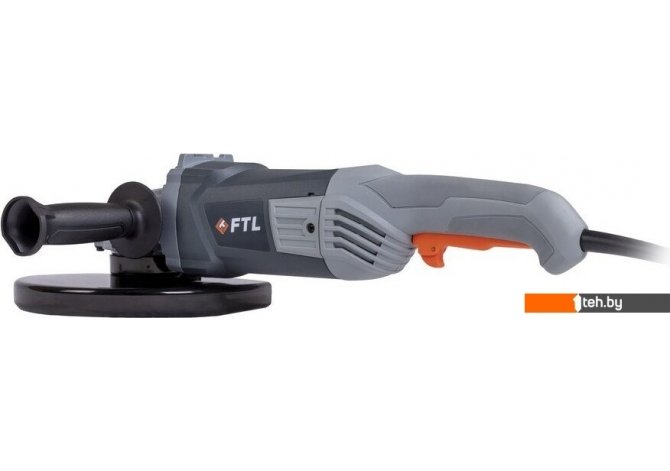 | Комплект поставки | Сетевая угловая шлифовальная машина FTL AG 230 – 1 шт.; Защитный кожух – 1 шт.; Ключ – 1 шт.; Дополнительная рукоятка – 1 шт.; Гайка и фланец – 1 компл.; Комплект угольных щёток – 1 шт.; Инструкция + Гарантийный талон – 1 компл. |