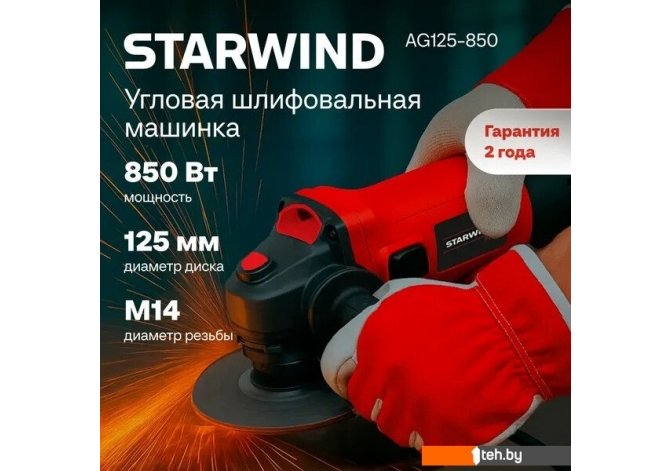 Фотографии, описание и технические характеристики модели болгарки StarWind AG125-850 взяты из открытых источников, официального сайта производителя или представительства StarWind в Республике Беларусь.
