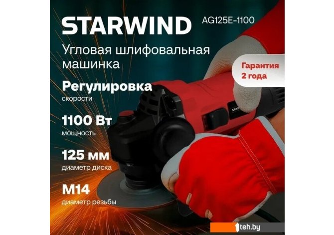 Фотографии, описание и технические характеристики модели болгарки StarWind AG125E-1100 взяты из открытых источников, официального сайта производителя или представительства StarWind в Республике Беларусь.