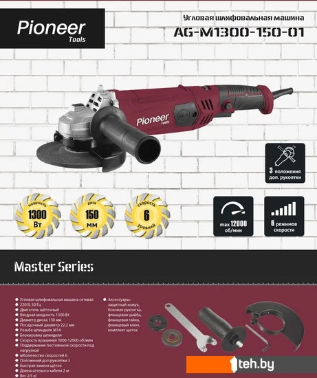 Фотографии, описание и технические характеристики модели болгарки Pioneer Tools Master AG-M1300-150-01 взяты из открытых источников, официального сайта производителя или представительства Pioneer Tools в Республике Беларусь.