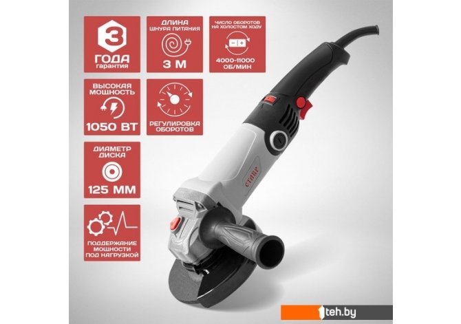 Фотографии, описание и технические характеристики модели болгарки Ставр МШУ-125/1050Э взяты из открытых источников, официального сайта производителя или представительства Ставр в Республике Беларусь.