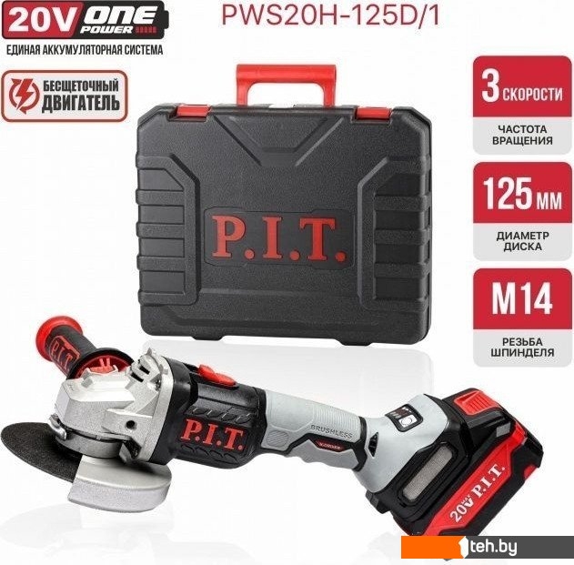 Фотографии, описание и технические характеристики модели болгарки P.I.T. PWS20H-125D/1 (с 1-им АКБ, кейс) взяты из открытых источников, официального сайта производителя или представительства P.I.T. в Республике Беларусь.