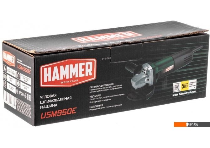 Фотографии, описание и технические характеристики модели болгарки Hammer USM950E взяты из открытых источников, официального сайта производителя или представительства Hammer в Республике Беларусь.