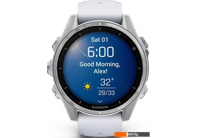 Фотографии, описание и технические характеристики модели умных часов Garmin Fenix 8 43мм (серебристый, белый ремешок) взяты из открытых источников, официального сайта производителя или представительства Garmin в Республике Беларусь.