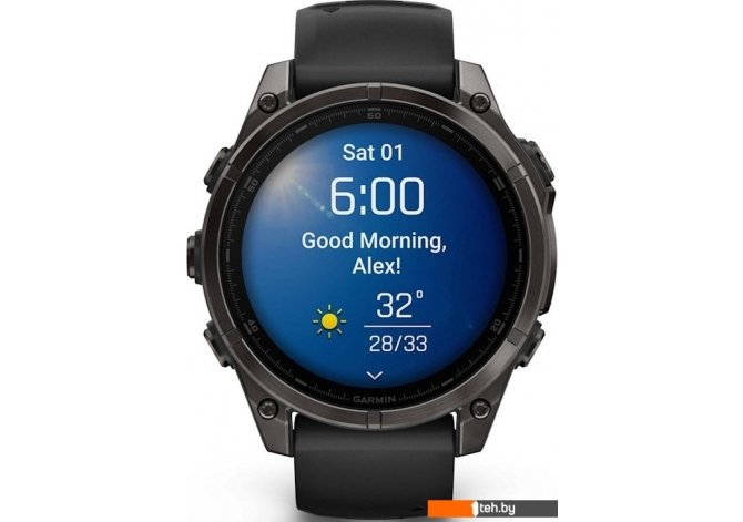 Фотографии, описание и технические характеристики модели умных часов Garmin Fenix 8 Sapphire, Titanium 47мм (угольно-черный DLC, пепельно-черный силиконовый ремешок) взяты из открытых источников, официального сайта производителя или представительства Garmin в Республике Беларусь.