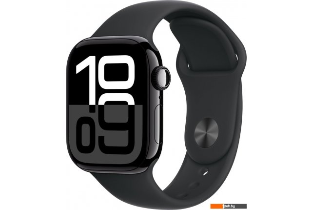 Watch Series 10 42 мм (алюминиевый корпус, черный/черный, спортивный силиконовый ремешок M/L)