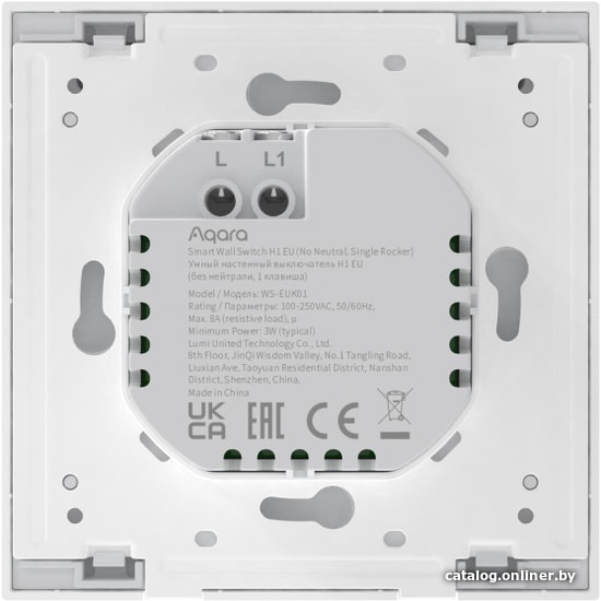 Фотографии, описание и технические характеристики модели Aqara Smart Wall Switch H1 (одноклавишный, без нейтрали) взяты из открытых источников, официального сайта производителя или представительства Aqara в Республике Беларусь.