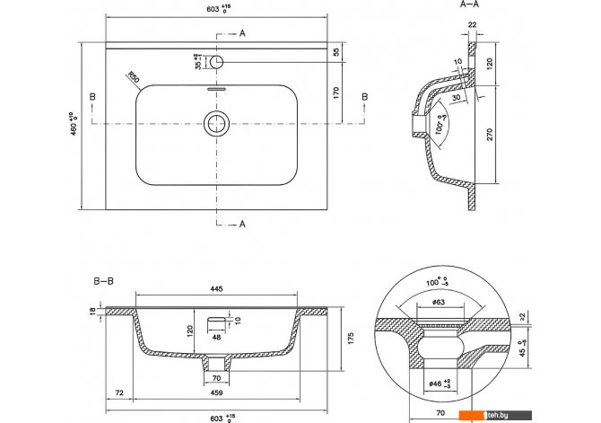 | Отверстие под смеситель | 1 |