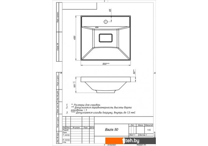 Фотографии, описание и технические характеристики модели Умывальника Versalia Bazis 50 взяты из открытых источников, официального сайта производителя или представительства Versalia в Республике Беларусь.