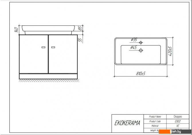 Фотографии, описание и технические характеристики модели Умывальника Ekokerama Doppio 80 0117 взяты из открытых источников, официального сайта производителя или представительства Ekokerama в Республике Беларусь.