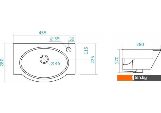| Отверстие под смеситель | Да 1 шт. (левое) |