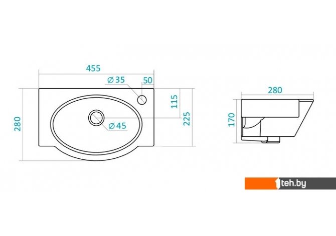 | Отверстие под смеситель | Да 1 шт. (правое) |