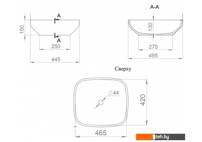 | Отверстие под смеситель | Нет |