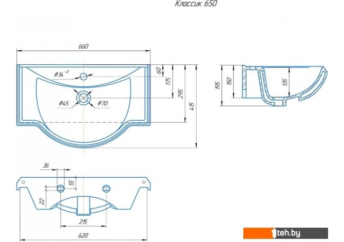 Фотографии, описание и технические характеристики модели Умывальника Kirovit Классик 65 взяты из открытых источников, официального сайта производителя или представительства Kirovit в Республике Беларусь.