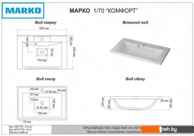Фотографии, описание и технические характеристики модели Умывальника Marko Комфорт 70 взяты из открытых источников, официального сайта производителя или представительства Marko в Республике Беларусь.