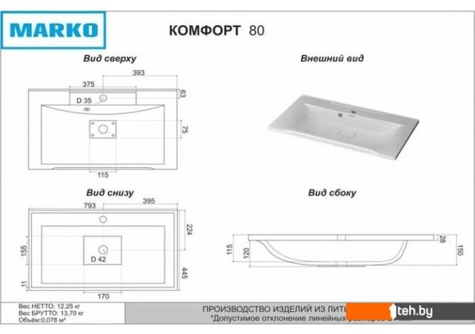 Фотографии, описание и технические характеристики модели Умывальника Marko Комфорт 80 взяты из открытых источников, официального сайта производителя или представительства Marko в Республике Беларусь.