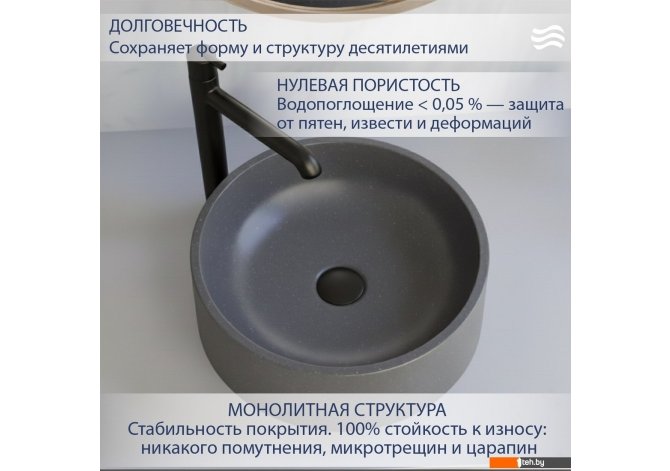 | Информация | -Ключевые характеристики Умывальник выполнен из искусственного гранита, что обеспечивает прочность и долговечность. Имеет одну круглую чашу диаметром 36.8 см с глубиной 9 см, что подходит для стандартного использования в ванной комнате. Размеры изделия 40 на 40 см при высоте 12 см делают его компактным и удобным для установки на столешницу. -Преимущества и отличия Модель обладает антибактериальным матовым покрытием, что способствует поддержанию гигиены и облегчает уход. Отсутствие отверстия для смесителя позволяет использовать любой тип смесителя, устанавливаемого отдельно. Наличие сливного отверстия с круглой формой обеспечивает надежный отвод воды. -Практичность Умывальник предназначен для крепления на столешницу, что упрощает монтаж и интеграцию в различные интерьерные решения. Центрированное расположение чаши обеспечивает удобство использования и эстетичность внешнего вида. Материал устойчив к воздействию влаги и механическим повреждениям. -Уникальность Использование искусственного гранита с антибактериальным покрытием выделяет изделие среди аналогов, обеспечивая долговечность и гигиеничность. Современный дизайн и матовая поверхность придают изделию стильный и аккуратный внешний вид, подходящий для современных ванных комнат. Читать дальше |