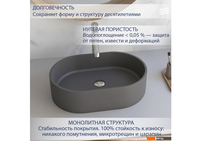 | Информация | -Ключевые характеристики Умывальник выполнен из искусственного гранита с матовой поверхностью и антибактериальным покрытием, что обеспечивает долговечность и гигиеничность. Модель имеет овальную форму и одну чашу с центральным расположением, размеры 60 на 40 см и высоту 12 см, что подходит для современных ванных комнат. -Преимущества и отличия Отсутствие отверстия под смеситель позволяет использовать любой тип смесителя, устанавливаемого отдельно. Накладной монтаж на столешницу упрощает установку и обеспечивает удобство эксплуатации. Материал искусственный гранит устойчив к механическим повреждениям и воздействию влаги. -Практичность Модель оснащена сливом с круглым отверстием, но без перелива, что требует дополнительного внимания при выборе сливной арматуры. Антибактериальное покрытие способствует поддержанию чистоты и снижает риск размножения бактерий на поверхности. -Уникальность Современный дизайн и коллекция Oliva подчеркивают стиль и функциональность изделия. Использование искусственного гранита с матовой поверхностью и антибактериальным покрытием выделяет эту модель среди типичных умывальников, предлагая сочетание эстетики и практичности. Читать дальше |