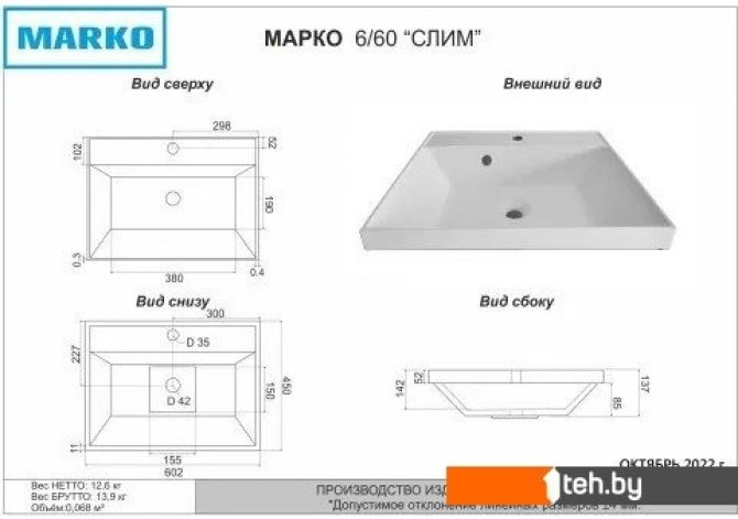 Фотографии, описание и технические характеристики модели Умывальника Marko Слим 60 взяты из открытых источников, официального сайта производителя или представительства Marko в Республике Беларусь.