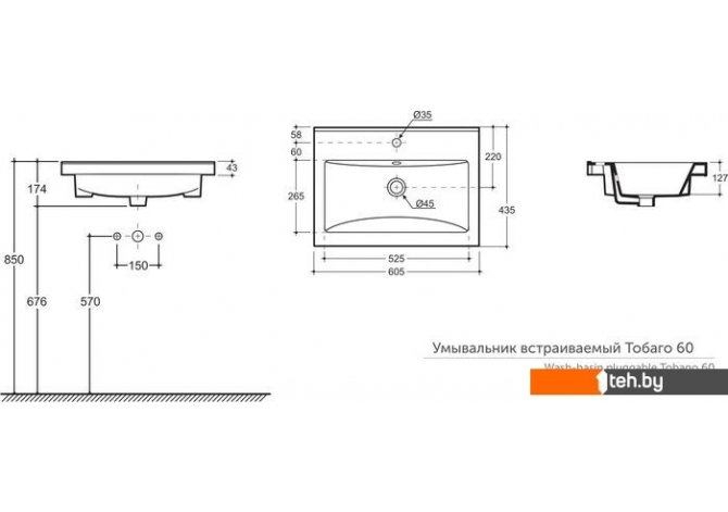 Фотографии, описание и технические характеристики модели Умывальника Керамин Тобаго 60 (встраиваемый, с отверстием) взяты из открытых источников, официального сайта производителя или представительства Керамин в Республике Беларусь.