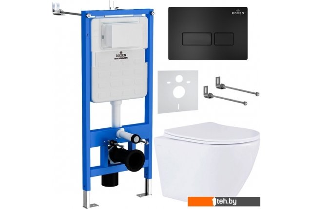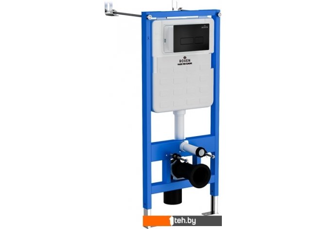| Информация | Комплект инсталляции 6 в 1 Roxen StounFix Slim 577729 с удлиненными креплениями в комплекте, шумоизоляционной плитой, кнопкой смыва Roxen Caspia 410280B ?и подвесным унитазом Roxen Antares 530185-01 Rimless Soft Close. Система инсталляции для унитаза Roxen StounFix Slim 710200 - надежная усиленная ультратонкая модель для максимальной экономии свободного пространства. Оптимальная выверенная монтажная глубина 120 мм позволяет создать необходимое давление в смывном бачке для максимально мощного смывного потока воды! Инсталляция Roxen StounFix Slim выполнена из высокопрочной стали и покрыта специальной порошковой краской, методом автоматического вакуумного напыления. Бачок защищен дополнительной шумоизоляционной пластиной S-Protect, которая предотвращает образование конденсата и плесени. Механическое управление смыва обеспечивает бесперебойную работу на весь срок службы. Инсталляция комплектуется удлиненными креплениями Plattenbau (при помощи удлиненных шпилек 50 см), что позволит вам без проблем отрегулировать необходимую монтажную глубину. Особенности инсталляции: усиленная монтажная рама выдерживает до 400 кг нагрузки, при испытуемой нагрузке 800 кг ультратонкий монтаж - монтажная глубина 120 мм подходит для всех типов унитазов (18 см, 23 см) удлиненные крепления механическое управление смыва цельнолитой бачок выполнен из высококачественного пластика HDPE шумоизоляционная пластина S-Protect, предотвращает образование конденсата и плесени объем бачка: 3/6 л расширенное ревизионное окно для быстрого и легкого доступа к сливной арматуре тихое наполнение бачка 2-х режимная система смыва шумоизоляционная плита латунный запорный вентиль гарантия производителя 25 лет Кнопка для инсталляции Roxen Caspia 410280B - ультратонкая смывная клавиша Slim Button (толщина - 8 мм). Стильный минималистичный дизайн с удобными прямоугольными клавишами придаст вашему санузлу изящный внешний вид. Кнопка изготовлена из ударопрочного, экологически чистого ABS пластика марки HDPE, имеет нестираемое покрытие поверхности. Быстросъемная система Easy Fix обеспечивает быстрый доступ к коммуникациям (монтаж и демонтаж клавиши осуществляется без специального инструмента). Надежный механизм клавиши рассчитан на 200 000 циклов. Характеристики клавиши смыва: цвет: черный матовый размеры клавиши (ШхВхГ), мм: 246х165х8 управление: механическое материал: пластик HDPE ударопрочная нестираемое покрытие поверхности специальное антибактериальное покрытие Purity бесшумная двухрежимная система смыва LightTouch быстросъемная система Easy Fix для быстрого доступа к коммуникациям Подвесной унитаз Roxen Antares 530185-01 Rimless Soft Close - компактная модель с удобной безободковой чашей Pro-Rimless, благодаря чему нет труднодоступных зон для уборки. Изготовлен из санитарного фарфора Porcelain, который обеспечивает прочность изделия, белизну, абсолютно гладкую поверхность, отсутствие пор и углублений. Специальное антибактериальное покрытие Ultra Glide обеспечивает легкий уход, гигиеничность и первоначальный внешний вид на долгие годы. Модель укомплектована тонким быстросъемным сиденьем с крышкой Soft Close (плавное опускание). размер (ГхШхВ), см: 485х365х365 материал: санитарный фарфор антибактериальное покрытие безободковая чаша круговое омывание чаши дюропластовое быстросъемное сиденье Slim (тонкое) система Soft Close (медленное опускание крышки) металлические крепления Особенности унитазов 