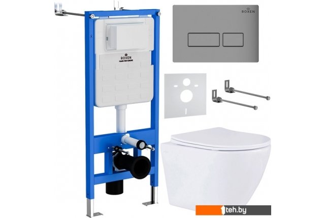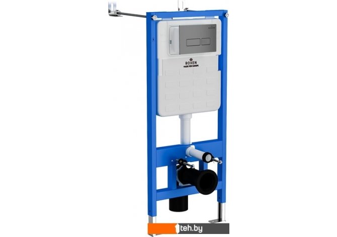 | Информация | Комплект инсталляции 6 в 1 Roxen StounFix Slim 597373 с удлиненными креплениями в комплекте, шумоизоляционной плитой, кнопкой смыва Roxen Caspia 410280M ?и подвесным унитазом Roxen Antares 530185-01 Rimless Soft Close. Система инсталляции для унитаза Roxen StounFix Slim 710200 - надежная усиленная ультратонкая модель для максимальной экономии свободного пространства. Оптимальная выверенная монтажная глубина 120 мм позволяет создать необходимое давление в смывном бачке для максимально мощного смывного потока воды! Инсталляция Roxen StounFix Slim выполнена из высокопрочной стали и покрыта специальной порошковой краской, методом автоматического вакуумного напыления. Бачок защищен дополнительной шумоизоляционной пластиной S-Protect, которая предотвращает образование конденсата и плесени. Механическое управление смыва обеспечивает бесперебойную работу на весь срок службы. Инсталляция комплектуется удлиненными креплениями Plattenbau (при помощи удлиненных шпилек 50 см), что позволит вам без проблем отрегулировать необходимую монтажную глубину. Особенности инсталляции: усиленная монтажная рама выдерживает до 400 кг нагрузки, при испытуемой нагрузке 800 кг ультратонкий монтаж - монтажная глубина 120 мм подходит для всех типов унитазов (18 см, 23 см) удлиненные крепления механическое управление смыва цельнолитой бачок выполнен из высококачественного пластика HDPE шумоизоляционная пластина S-Protect, предотвращает образование конденсата и плесени объем бачка: 3/6 л расширенное ревизионное окно для быстрого и легкого доступа к сливной арматуре тихое наполнение бачка 2-х режимная система смыва шумоизоляционная плита латунный запорный вентиль гарантия производителя 25 лет Кнопка для инсталляции Roxen Caspia 410280M - ультратонкая смывная клавиша Slim Button (толщина - 8 мм). Стильный минималистичный дизайн с удобными прямоугольными клавишами придаст вашему санузлу изящный внешний вид. Кнопка изготовлена из ударопрочного, экологически чистого ABS пластика марки HDPE, имеет нестираемое покрытие поверхности. Быстросъемная система Easy Fix обеспечивает быстрый доступ к коммуникациям (монтаж и демонтаж клавиши осуществляется без специального инструмента). Надежный механизм клавиши рассчитан на 200 000 циклов. Характеристики клавиши смыва: цвет: хром матовый размеры клавиши (ШхВхГ), мм: 246х165х8 управление: механическое материал: пластик HDPE ударопрочная нестираемое покрытие поверхности специальное антибактериальное покрытие Purity бесшумная двухрежимная система смыва LightTouch быстросъемная система Easy Fix для быстрого доступа к коммуникациям Подвесной унитаз Roxen Antares 530185-01 Rimless Soft Close - компактная модель с удобной безободковой чашей Pro-Rimless, благодаря чему нет труднодоступных зон для уборки. Изготовлен из санитарного фарфора Porcelain, который обеспечивает прочность изделия, белизну, абсолютно гладкую поверхность, отсутствие пор и углублений. Специальное антибактериальное покрытие Ultra Glide обеспечивает легкий уход, гигиеничность и первоначальный внешний вид на долгие годы. Модель укомплектована тонким быстросъемным сиденьем с крышкой Soft Close (плавное опускание). размер (ГхШхВ), см: 485х365х365 материал: санитарный фарфор антибактериальное покрытие безободковая чаша круговое омывание чаши дюропластовое быстросъемное сиденье Slim (тонкое) система Soft Close (медленное опускание крышки) металлические крепления Особенности унитазов Roxe