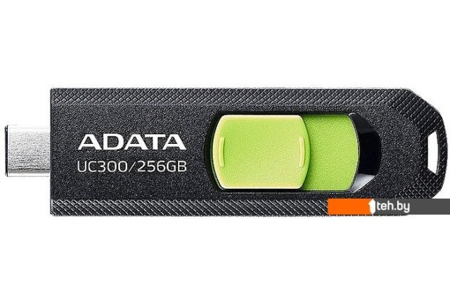 Фотографии, описание и технические характеристики модели флешки ADATA UC300 256GB (черный/зеленый) взяты из открытых источников, официального сайта производителя или представительства ADATA в Республике Беларусь.