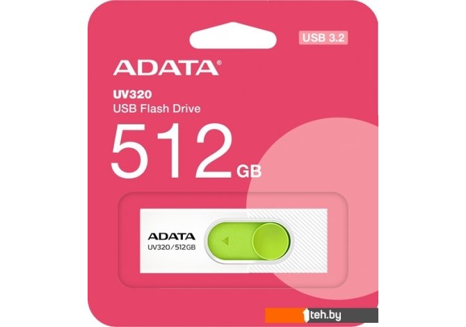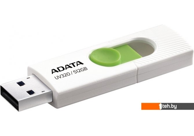 Фотографии, описание и технические характеристики модели флешки ADATA UV320 512GB (белый/зеленый) взяты из открытых источников, официального сайта производителя или представительства ADATA в Республике Беларусь.