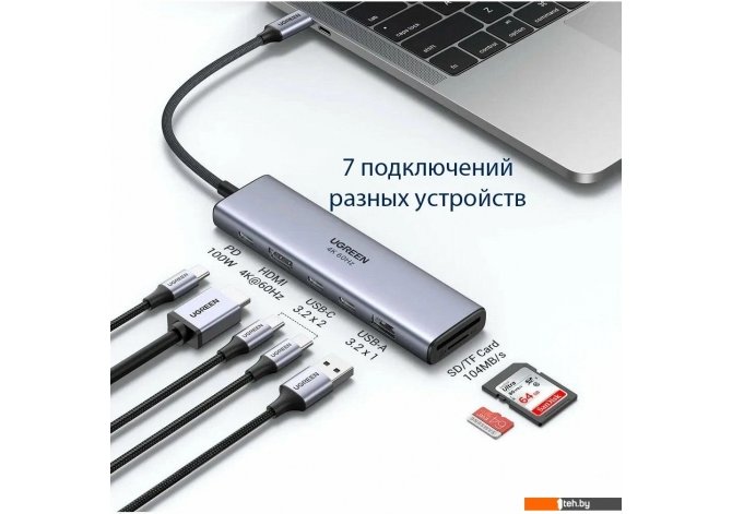 | Информация | -Док-станция UGREEN CM511 7-в-1 - это многофункциональное устройство, которое подключается к компьютеру или ноутбуку через USB-C и значительно расширяет возможности вашего рабочего пространства. Компактный и стильный аксессуар позволяет подключить до семи различных устройств одновременно, включая два порта USB-C 3.2, один USB-A 3.2, HDMI, кардридеры SD и TF, а также воспользоваться портом Power Delivery с поддержкой быстрой зарядки мощностью до 100 Вт. -Высокая скорость передачи данных по USB 3.2 (до 10 Гбит/с) обеспечивает быструю синхронизацию файлов, а поддержка HDMI 2.0 с разрешением до 4K при 60 Гц, HDR 10, 3D и HDCP 2.2 делает хаб отличным выбором для работы с мультимедиа и подключением современных мониторов или телевизоров. Одновременное чтение карт памяти SD и TF удобно для фотографов и пользователей, работающих с большим количеством данных. -Корпус устройства выполнен из прочного алюминия в современном сером цвете, что не только обеспечивает долговечность, но и придает док-станции стильный внешний вид. Совместимость с основными операционными системами (Windows, macOS, Linux) позволяет использовать хаб с большинством современных устройств, включая ноутбуки, планшеты и ПК. -В комплекте вы найдете подробную инструкцию по эксплуатации, а производитель предоставляет гарантию сроком на 2 года. UGREEN CM511 станет отличным решением для расширения портов вашего устройства, организации удобного рабочего пространства и быстрой работы с мультимедиа-файлами. |