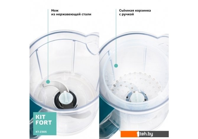 | Информация | Вкусные и полезные блюда лучше всего готовить на пару — продукты готовятся равномерно и не пригорают, в них сохраняются полезные вещества и витамины. Для прикорма маленьких детей приготовленную пищу необходимо измельчить до нужной консистенции. Блендер-пароварка Kitfort KT-2305 готовит в два приема: варит на пару, затем измельчает и смешивает. Он будет хорошим помощником родителей на кухне и поможет сэкономить время. Благодаря корзине, пар во время готовки постоянно циркулирует в чаше и равномерно прогревает продукты. По окончании готовки прибор автоматически отключается, поэтому пища не переварится. Мыть блендер удобно и просто. Ножевой блок полностью разбирается, поэтому вы можете промыть все его части по отдельности. |