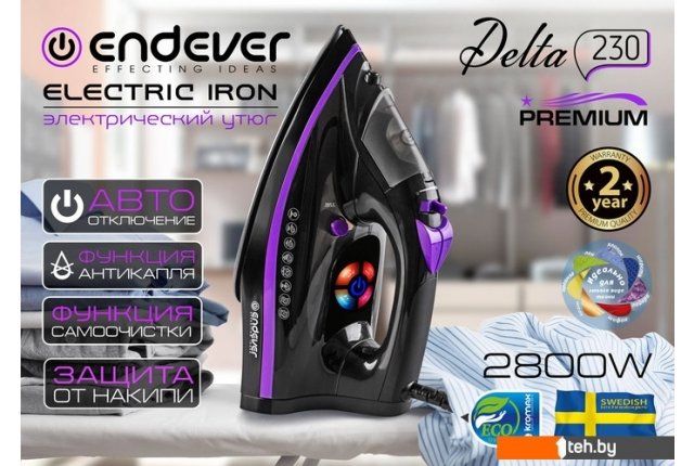Фотографии, описание и технические характеристики модели утюга Endever Delta-230 взяты из открытых источников, официального сайта производителя или представительства Endever в Республике Беларусь.
