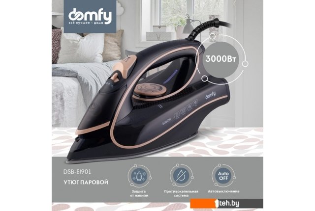 Фотографии, описание и технические характеристики модели утюга Domfy DSC-EI901 взяты из открытых источников, официального сайта производителя или представительства Domfy в Республике Беларусь.