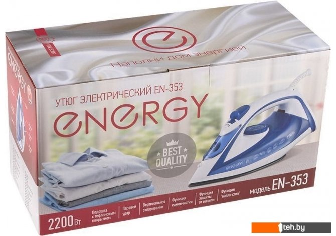 Фотографии, описание и технические характеристики модели утюга Energy EN-353 (голубой/белый) взяты из открытых источников, официального сайта производителя или представительства Energy в Республике Беларусь.