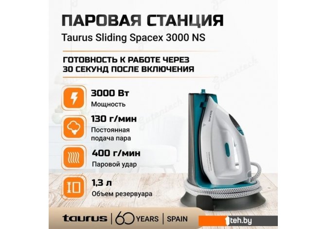 | Информация | ? Паровая станция Taurus Sliding Spacex 3000 NS - утюг с парогенератором, который также служит подставкой для утюга. ? Большая площадь подошвы экономит время и обеспечивает равномерную подачу пара. ? Проста в использовании, не требует специальных навыков. ? Эргономичная форма обеспечивает удобство при использовании. |