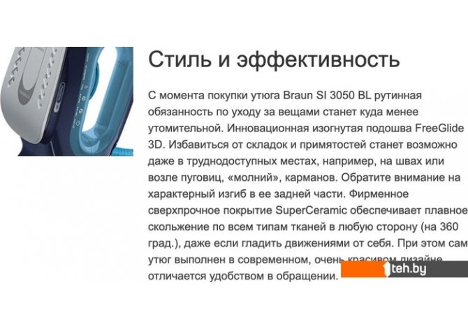 Фотографии, описание и технические характеристики модели утюга Braun TexStyle 3 SI3050BL взяты из открытых источников, официального сайта производителя или представительства Braun в Республике Беларусь.