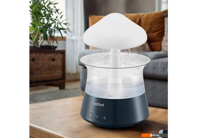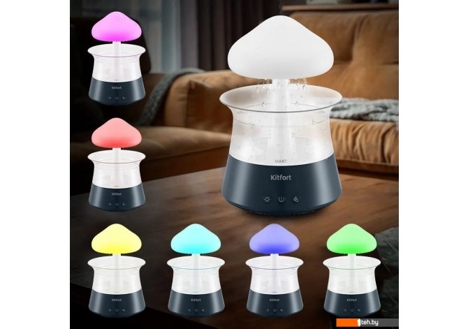 | Информация | Дышите свободно! Увлажнитель-ароматизатор воздуха КТ-3838 — компактный прибор, который создаст благоприятный микроклимат рядом с вами. Устройство будет увлажнять воздух вокруг области его размещения, поэтому можно комфортно находиться на рабочем месте или крепко спать. Расслабьтесь под мелодию дождя Особенностью увлажнителя-ароматизатора КТ-3838 является эффект дождя, который возникает за счёт подачи воды сверху вниз насосом в корпусе устройства. Звук дождя успокаивающе действует на нервную систему и помогает быстрее заснуть. Спите спокойно! Вы можете использовать устройство как ночник, включив подсветку с плавной сменой семи цветов или выбрав один цвет подсветки, который будет гореть непрерывно или мягко затухать и загораться снова. Полный контроль У устройства простое и лёгкое управление тремя кнопками. Есть возможность включить таймер на 5 часов. По истечении установленного времени или при отсутствии воды увлажнитель-ароматизатор автоматически отключится. Любимый аромат у вас дома! Добавьте в резервуар для воды несколько капель ароматического масла, чтобы во время работы прибора оно вместе с туманом выдувалось наружу потоком воздуха, создавая вокруг приятный и ненавязчивый аромат. Подключение через USB Туре-С В комплекте к увлажнителю идёт шнур USB Туре-С, с помощью которого вы можете подключить устройство к удобному для вас источнику питания. Влажность, как вам нужно Излучатель, создающий туман, и водяной насос, подающий воду, могут работать одновременно или по отдельности. Колпачок над излучателем способствует правильному распределению тумана и препятствует сильному разбрызгиванию капель воды. Уют и свежесть в каждой капле Увлажнитель-ароматизатор КТ-3838 увлажняет воздух, наполняет его ароматом и создаёт расслабляющий эффект дождя. Встроенная подсветка с плавной сменой цветов добавит уюта, а удобное управление и таймер обеспечат комфортное использование. |