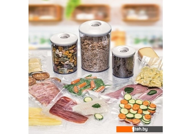 | Режимы | сухие продукты, влажные продукты, щадящий (soft vacuum), запаивание без вакуума, мгновенная остановка |