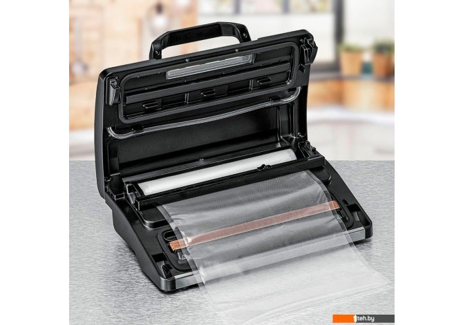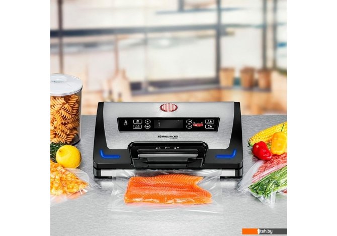 | Информация | - Вакууматор Rommelsbacher VAC 585 - это современное устройство для герметичной упаковки продуктов, позволяющее сохранить их свежесть и вкусовые качества на длительное время. Благодаря удобному управлению одной рукой и сенсорной панели с индикатором состояния, процесс вакуумирования становится максимально простым и интуитивным. - Встроенный отсек для рулонов с резаком позволяет легко нарезать необходимую длину упаковочного материала, а двухпоршневой насос обеспечивает производительность до 20 литров в минуту и высокий уровень вакуума до -0,9 бар. Электронный контроль температуры запаивания и двойной сварной шов шириной по 2,5 мм гарантируют надежное и качественное запечатывание пакетов. - Rommelsbacher VAC 585 поддерживает как ручное, так и автоматическое вакуумирование, имеет импульсный режим, специальные настройки для влажных, сухих и мягких продуктов, а также программу маринования. Возможность откачивания воздуха из контейнеров расширяет функциональность прибора. - Вакуумная камера оборудована съемной вставкой для сбора жидкости, имеется отсек для хранения кабеля. В комплекте поставляются 10 пакетов, 1 рулон и вакуумный шланг, что позволяет сразу приступить к использованию устройства без дополнительных покупок. |