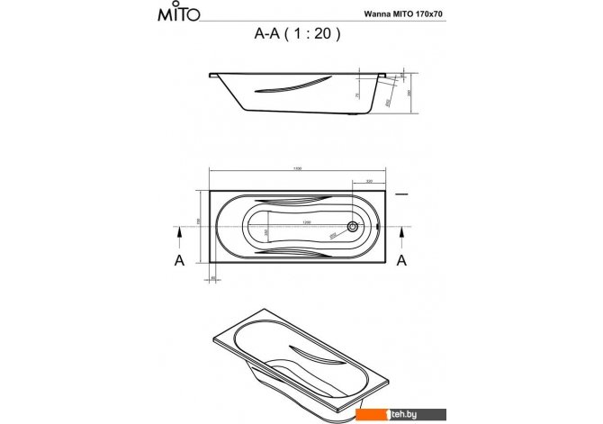 Mito Red 170x70 с ножками со смесителем Brasko (с сифоном Prime черным)