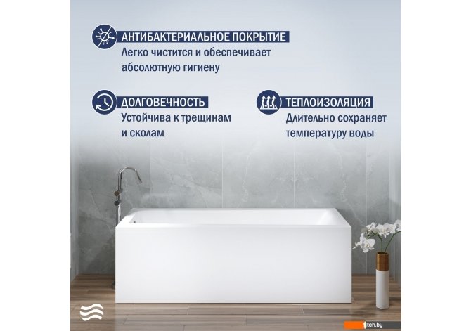 | Информация | - Ванна Lauter изготавливается методом вакуумного формования из экологически чистого 100% акрилового листа ПММА, что обеспечивает долговечность и блеск поверхности. - Идеальная глянцевая поверхность ванны покрыта антибактериальным слоем, легко моется и держит белый цвет, что делает ее удобной в использовании. - Продукт соответствует требованиям международной организации по стандартизации качества ISO 9001: 2005-10, что гарантирует его высокое качество. - Армирующий слой полностью запечатывается полиэфирной смолой и плотно укатывается, обеспечивая максимальную жёсткость и долговечность изделия. - Конструкция ванны предполагает установку на поперечные ножки или усиленный металлический каркас, что обеспечивает надежную фиксацию и выдерживает максимальную нагрузку до 500 кг. |