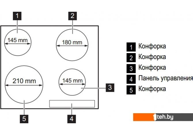 | Количество конфорок | 4 |