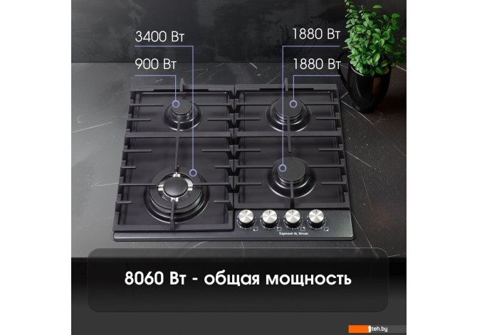| Подробная информация о конфорках | 3400; 1880; 1880; 900 Вт |