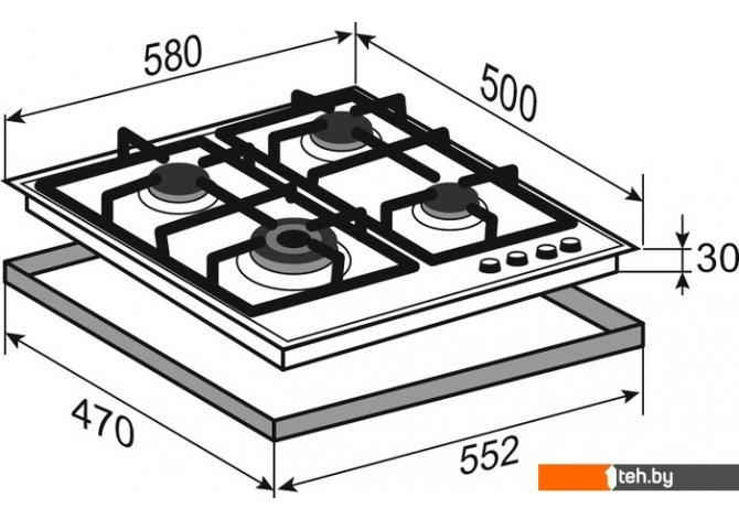 | Подробная информация о конфорках | Мощность горелок, Вт 3400; 1880; 1880; 900 |