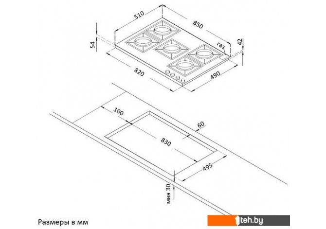 | Тип варочной поверхности | газовая |