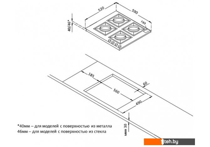 | Овальные/прямоугольные конфорки | Нет |