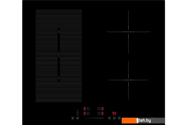 | Подробная информация о конфорках | левая передняя конфорка 180мм, 1800Вт/бустер 2200Вт --- левая задняя конфорка 180мм, 1300Вт/бустер 1500 Вт --- правая задняя конфорка 180мм, 1800Вт/бустер 2200 Вт --- правая передняя конфорка 180 мм, 1300Вт/бустер 1500Вт --- флекси зона 180*380мм 3000Вт/ бустер 3600 Вт |